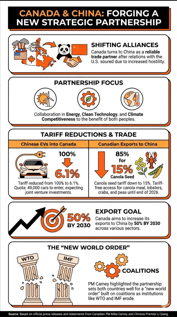 4日間の中国訪問中、首相マイク・カーニーは、両国民の利益のために中国との新たな戦略的パートナーシップを築いていると述べました。プレスリリースによれば、この新しいパートナーシップは、エネルギー、クリーンテクノロジー、気候競争力の分野での協力に焦点を当てるとしています。