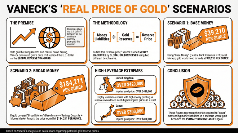 「これらの数値は、金が再び主要な準備資産となるシナリオにおいて、未回収の貨幣負債を『カバー』するために必要な価格を表しています」とヴァンエックは説明しました。
